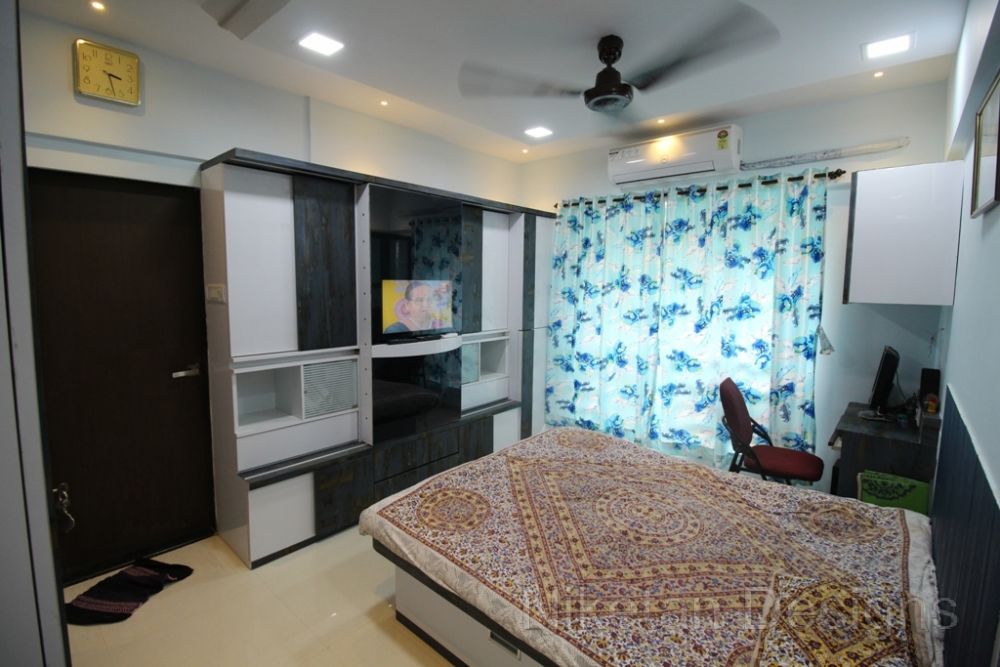 Mr. Prabhudesai (1BHK Residence in Andheri - East) Creativity is intelligence having fun, and we had loads of such fun when we renovated the residence of Mr. Prabhudesai and converted this 1BHK into an apartment of modern amenities. The focus was on creating a spacious living room with the state of art technology. The creativity lied in positioning the TV unit in the living room with a rotating view that could be seen from the dining area. The cabinet designed for the bedroom has a sliding TV panel which can be moved on either side of the cabinet. A magic mirror (black painted glass), is installed behind the TV so that the viewing experience is not hampered by the stuff kept in the cabinet when the TV is on. The final touch which enhanced the entire view of the apartment was the use of rustic blue and white combination laminates.