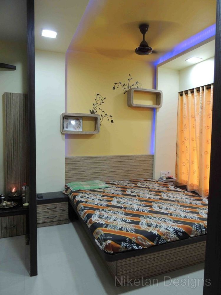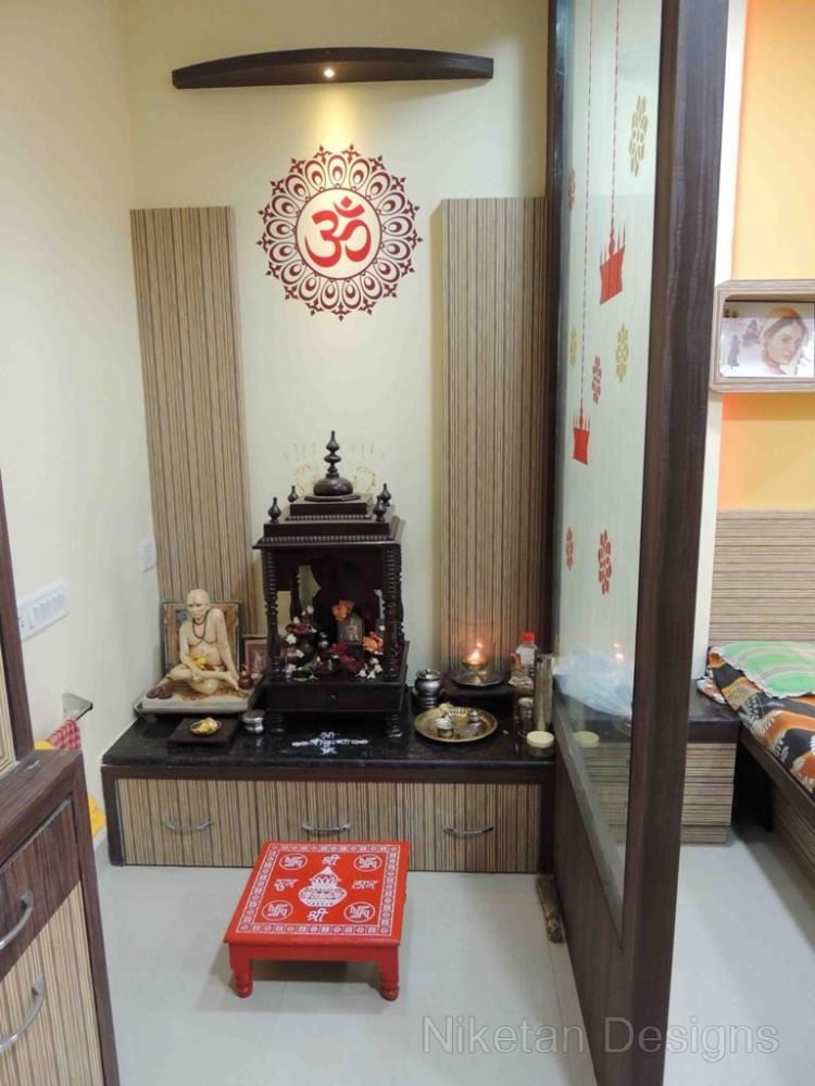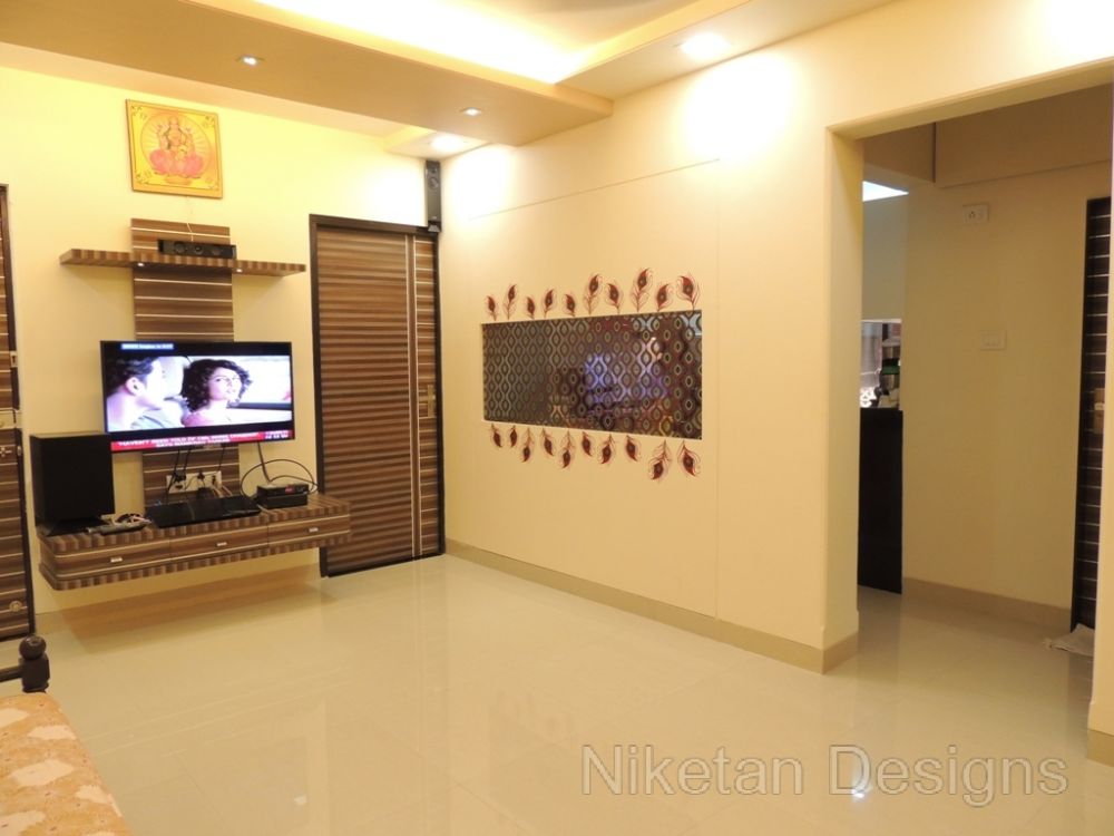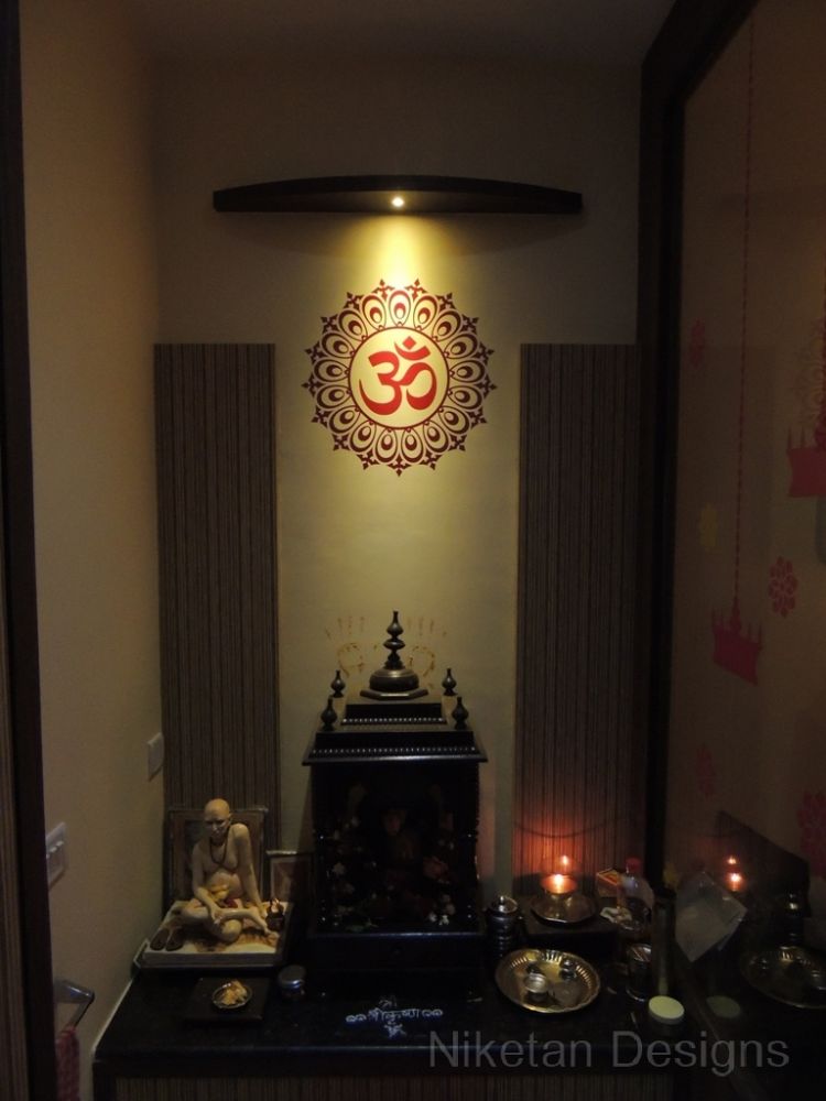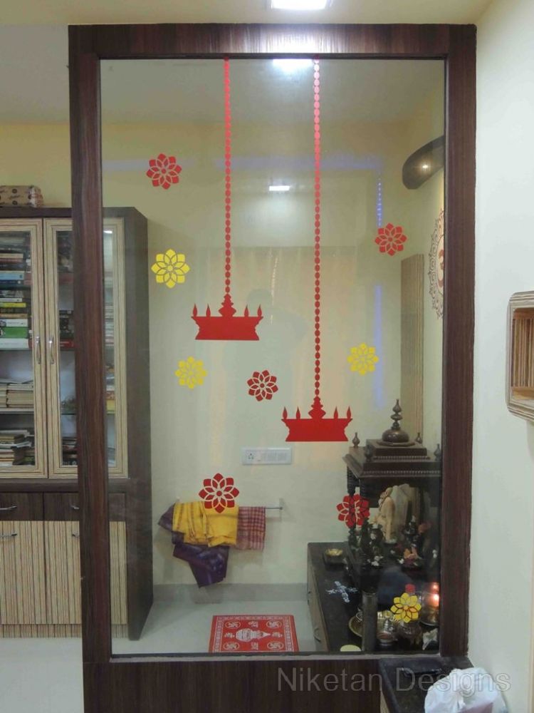 “Back to basics†is the phrase that comes to mind when we think about how we designed the house for Mr. Kedar Moghe. We did the interior designing of his house by combining a traditional theme and modern materials which gave us a unique outcome. The old fittings were re-used to create the new ones to judiciously save money. The decal floral theme was used across the house giving a soothing effect, especially with the lightings. The space containing the swing was converted to sitting area while the kitchen and the living room were separated by a false partition. Two things really made Mr. Kedar Moghe’s family ecstatic about their residence – the composition of the temple space and nameplate created with light effects through a deep frost glass.