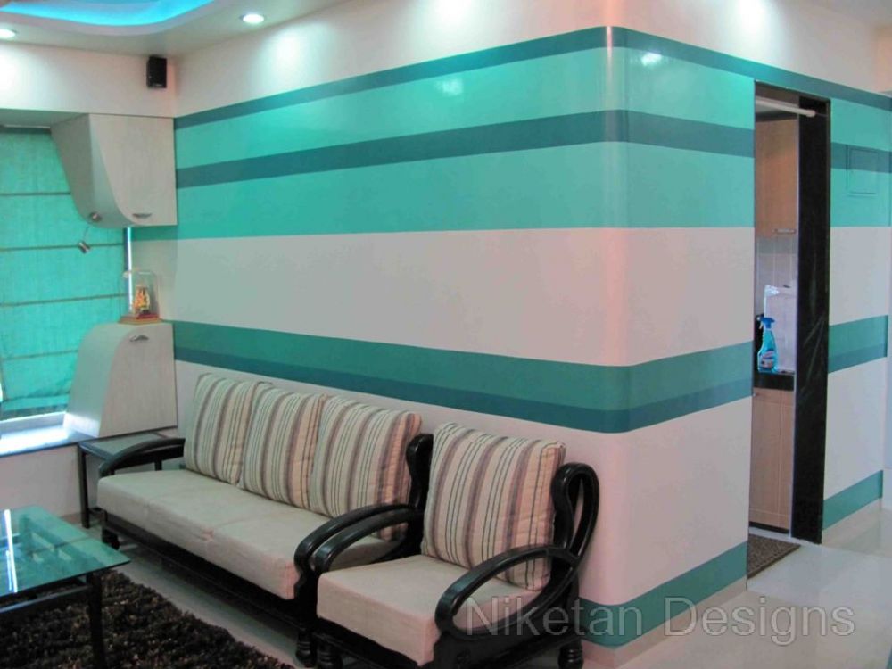 We suggested Mr. Himakar Kothian a very unique and interesting theme for his 2BHK Kandivali residence. The theme was inspired by aqua contours from across the planet for colors, textures, and lighting. The entrance was designed in such a way that a visitor feels he is standing inside an aquarium and this play on perception quickly grabs the attention of every new guest. We also textured the walls with horizontal bands, linear lighting, and circular ceiling design to create the desired aqua effects. The bunk beds for kids with storage and the seating arrangement in the living room provide maximum comfort all the while adhering to the central theme.