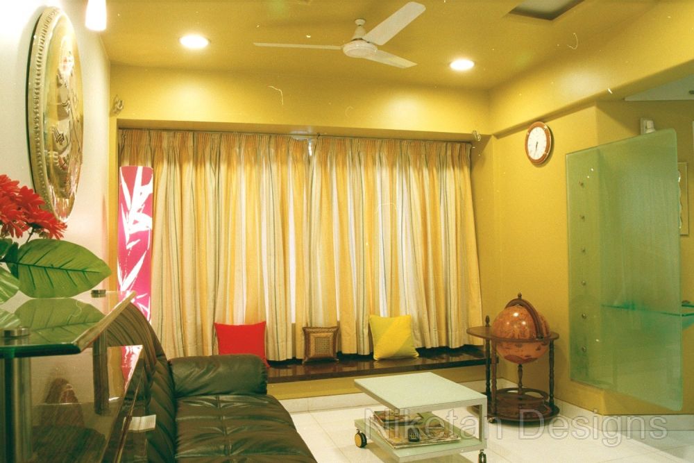 This 2BHK at Borivali, belonging to Mr. Pradeep Manjrekar, brings a wave of freshness to our portfolio. This wooden theme-based residence is designed to adhere to the client's modern taste and create a cinematic aura around the place. A lot of thought has gone towards putting in the place the perfect flooring - be it the wooden floor in bedrooms, yellow flooring in children's room or the beautiful white flooring in kitchen and pooja room. The children's room also reflects the overall theme of the home with a little twist - throwing in red and green color for a vivid effect . Little touches such as selecting walnut veneer wood for seating in the living room and decorating pooja room with shlokas on the wall add to the overall beauty of the residence.